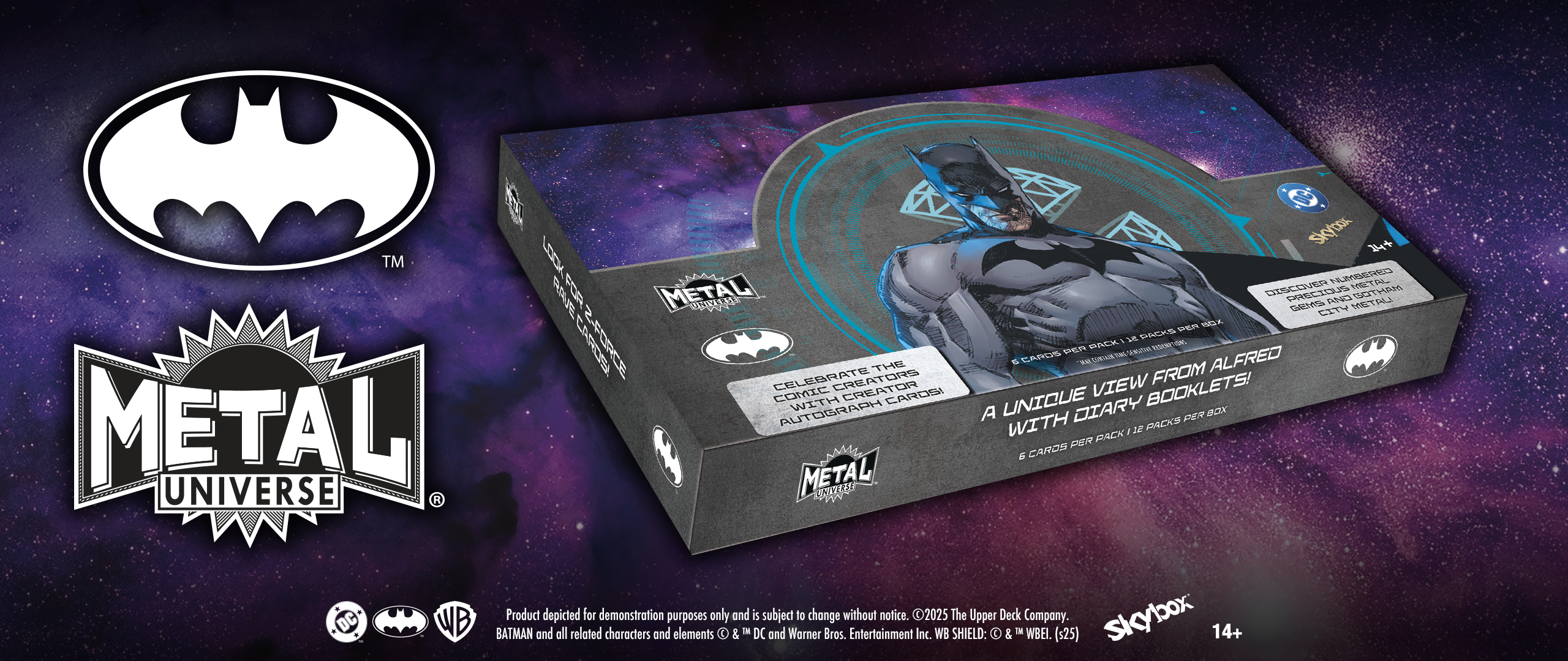 Upper Deck and DC Comics come together in this inaugural Skybox Metal Universe Batman trading card set! Uncover serial numbered parallels, etch foil, die-cuts, patterned foilboard, Precious Metal Gems and more!