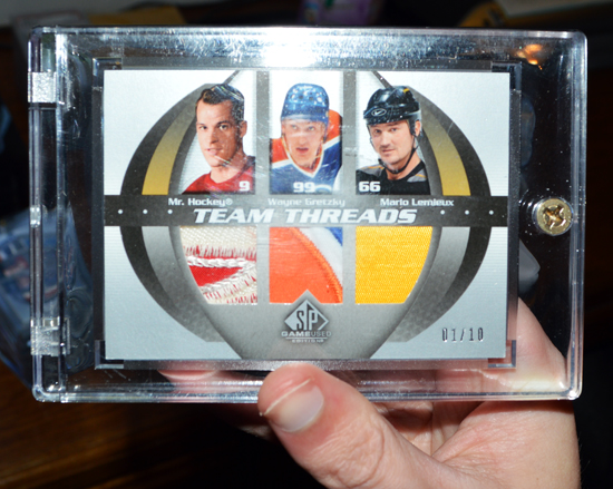 We’ve featured Jeffrey Griffith before on the Upper Deck Blog, but he remains one of the nicest collectors you will meet in the hobby and when he allowed me to come to his house to check out his incredible collection of Wayne Gretzky cards and memorabilia, I was immediately excited. I had heard about the collection and seen pictures, but to experience it in person was absolutely awesome. Jeff pulled out one after another of show-stopping inserts of Gretzky from various Upper Deck products over the years, it was unbelievable.