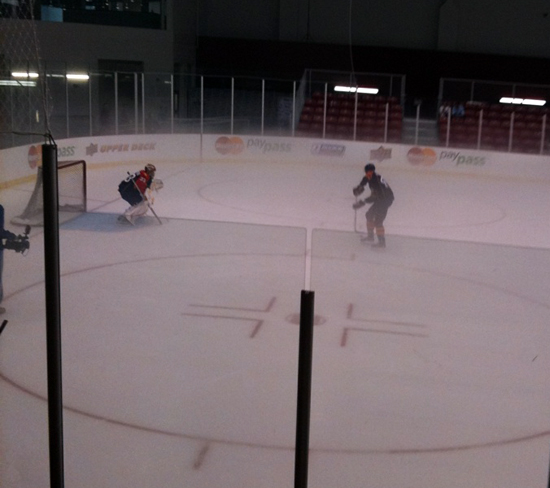 Gudbranson and teammate Jacob Markstrom (in goal) had some fun going head to head against each other during the event.
