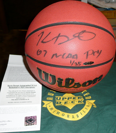 Autographed Memorabilia – When you are looking to make an investment in signed memorabilia, the two most important things to remember is that you are getting the real thing and a quality collectible. Upper Deck Authenticated worked exclusively with Kevin Durant during his rookie season and was the home for his signed collectibles. There are others out there who are producing collectibles for Thunder players, but you just need to do your due diligence in making sure you get the real thing.