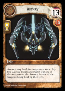 Creatures and Relics are all placed in a slot, but you can stack cards with identical names in the same slot! So if you want to have 12 creatures you can, as long as you have 3 copies of the 4 different ones! And Enhancements can be placed on Creatures, which will occupy the same slot of that creature, and provide bonuses or special abilities to them!