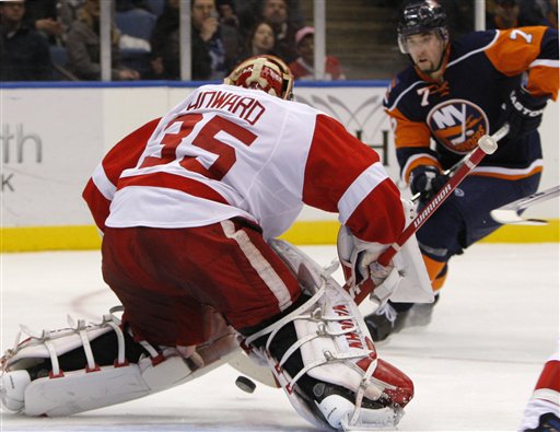 Red Wing rookie Jimmy Howard started the game; but after half the game and going down 3-0, Chris Osgood came in to relieve Howard, and arguably did no better (also giving up three goals in his half of the game, and on less shots). Overall, this game is one that the Red Wings will look to quickly forget as they try and get back on track in the second half of the season. Dwayne Roloson was good in the net for the Islanders, though he simply wasn’t put to many tests. He came up with the saves and ended up with his first shutout of the year.