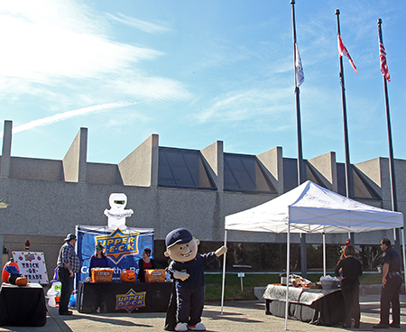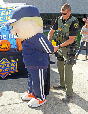 Over 20 different Police Departments, Sheriff Departments, Border Patrol & Fire Departments showed up at our UD headquarters and were given more than 30,000 packs of cards which varied among our sports and entertainment products. Our Upper Deck mascot, Coach Cardman, even made an appearance in his very festive “Coach Cardcula” costume inspired by Dracula himself.