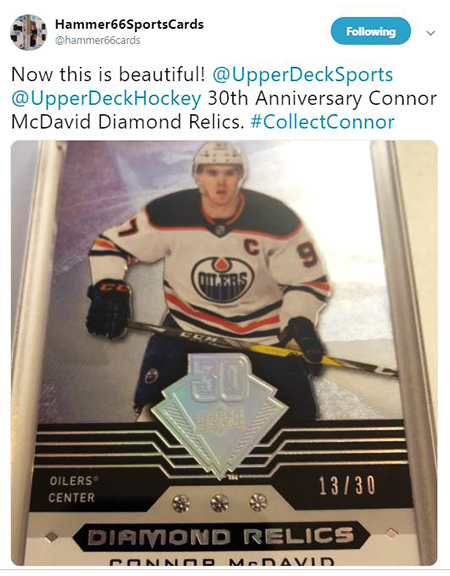 Starting in early 2019, fans started noticing something different in packs of 2018-19 NHL® Trilogy in the form of a Connor McDavid triple diamond relic card that touted Upper Deck’s 30th Anniversary.