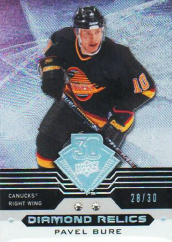 Then two of these cards popped up in 2018-19 NHL® SP Game-Used with legendary player Pavel Bure getting double diamond treatment and rookie Ryan Donato getting a single diamond version of the 30th Anniversary tribute cards.