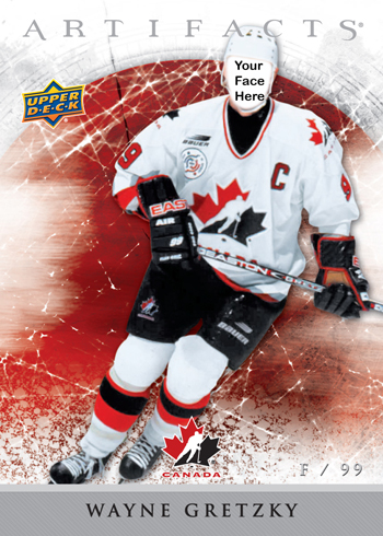And last but not least, Upper Deck will be offering fans the ultimate photo-op where they can be pictured as the “Great One” on an Upper Deck Team Canada Trading card! That’s right, UD will have a HUGE blow-up card of Upper Deck exclusive spokesman Wayne Gretzky where fans can put their head through the card to become the “Great One.”