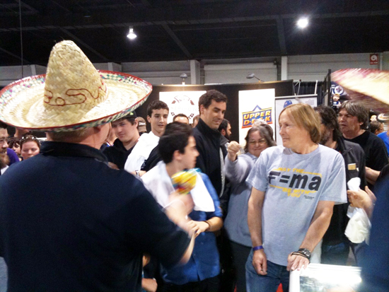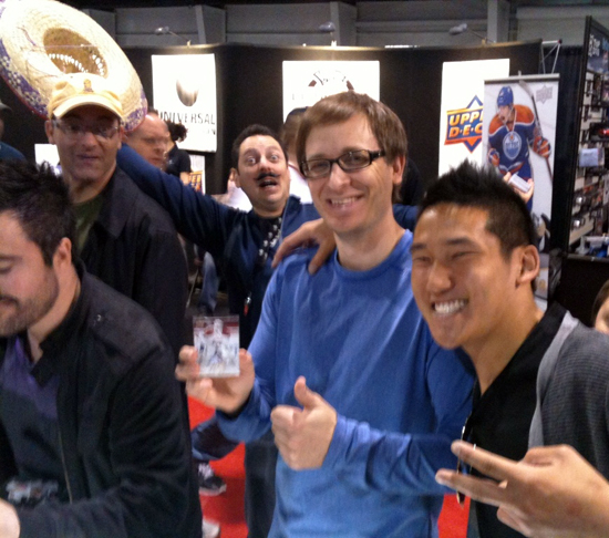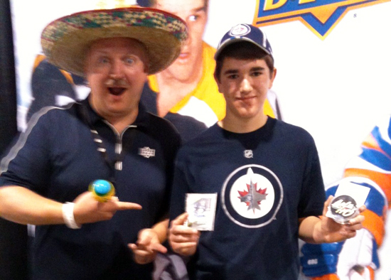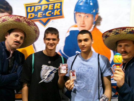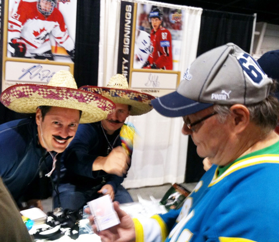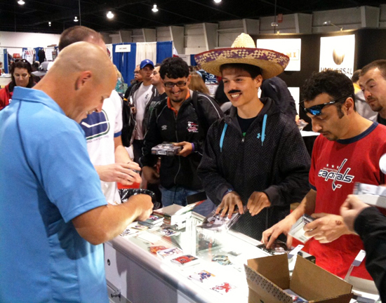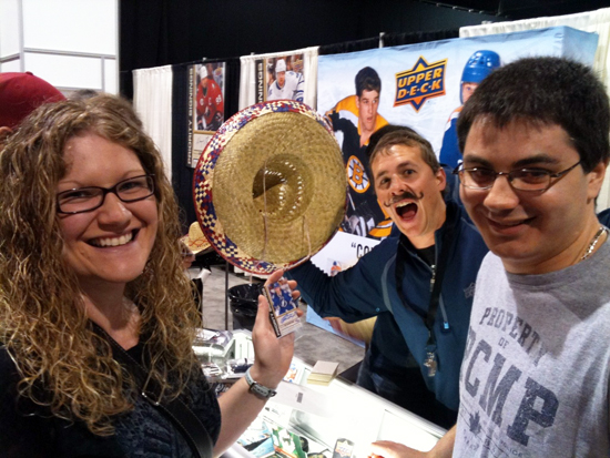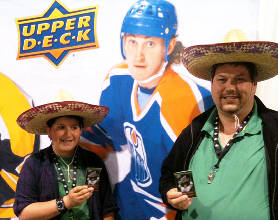 The most common question Upper Deck staff heard during the Spring Sports Card & Collectibles Expo last Saturday was, “What’s with the sombreros?” As many fans know, Upper Deck is located only about an hour north or Mexico so we thought it would be fun to bring some Spanish flavor to the Expo for Cinco de Mayo. And fans seemed to have a great time with it, especially when it came time for the raffle later on in the day where a huge crowd gathered to take part in the festivities.