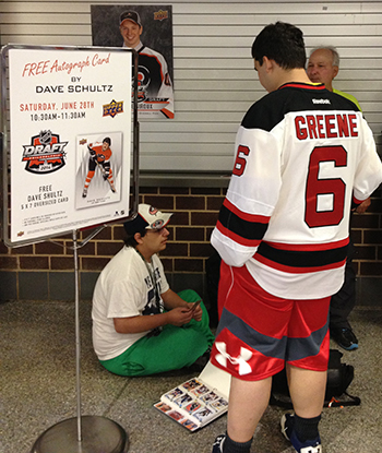 Upper Deck is all about bringing fans closer to the game which is why we brought in Dave “The Hammer” Schultz to spend some time with Flyers fans and sign FREE autographs for them on the second day of the NHL Draft®. He was great and gave all the fans time, working through a very long line.