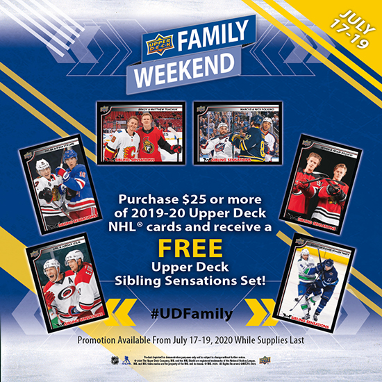 Hockey fans can score a new set of “Sibling Sensations” promotional packs to celebrate Upper Deck Family Weekend with a qualifying purchase at these shops. Share your Upper Deck Family Day stories on social media using #UDFamily.