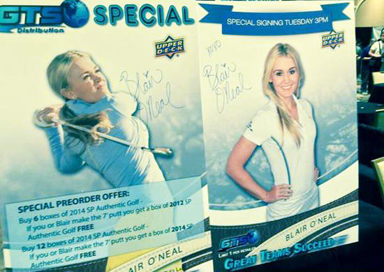 Later on that afternoon Upper Deck partnered with GTS Distribution to bring an amazing young professional golfer, Blair O’Neal, to the show for autographs and photos. Attendees thoroughly enjoyed her appearance and she even did a bit of a putting clinic with some lucky shop owners. And we also held the expired redemption raffle that afternoon where again, everyone who participated in the promotion, won a prize with them all being shipped out this week and next.