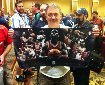 The moment that had everyone buzzing however was at the end of the event where we awarded attendees with special Las Vegas Industry Summit packs. With an autograph in every pack from sports superstars along with five instant redemption cards good for Upper Deck Authenticated memorabilia. Check out the checklist for the set! n did a bit of a putting clinic with some lucky shop owners. And we also held the expired redemption raffle that afternoon where again, everyone who participated in the promotion, won a prize with them all being shipped out this week and next.