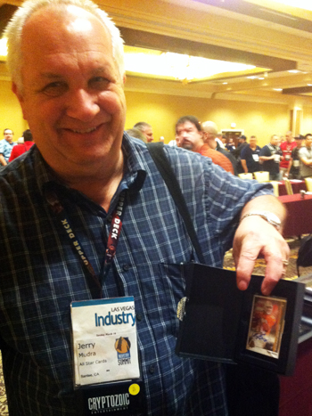 Upper Deck started the show by having shop owners share their well wishes and favorite moments from the last 25 years in the industry on a special memory wall featuring the company’s top spokesmen. Upper Deck also shared special 25th Anniversary shirts with attendees which were a huge hit. And the Upper Deck booth was something to see as the company had a huge area at the front of the room where we showed off a variety of awesome Upper Deck Authenticated memorabilia, super-premium trading cards and an amazing mosaic from artist Tim Carroll featuring Ken Griffey Jr. that UD recently had Junior autograph during a signing session & media tour.