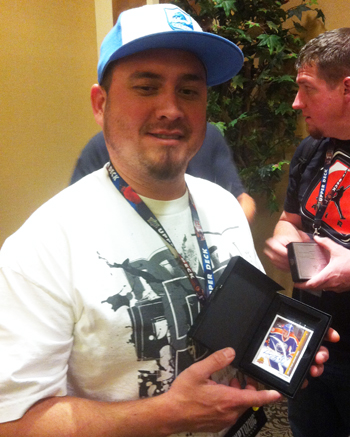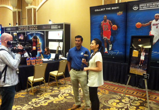 On Monday shops were busy attending meetings and panels. Upon completing the Meet the Manufacturer portion of the event, many attendees were gifted with a special 5-card 25th Anniversary promo set from Upper Deck. Once the show floor opened however, the Upper Deck booth was the prime meeting point for attendees and ESPN’s Mint Condition stopped in to film three segments for the popular hobby show.
