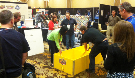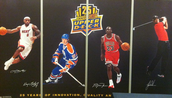 That evening was a special welcome reception for attendees celebrating the 25th anniversary of not only Upper Deck, but also for one of the industry’s top distributors, Sports Images and the beloved supply company Ultra-Pro. Hobby shop owners surprised all three companies by awarding them with special trophies as thanks for all their help over the years. It was a fun-filled evening with great food, live music, cool promos and even beer pong.
