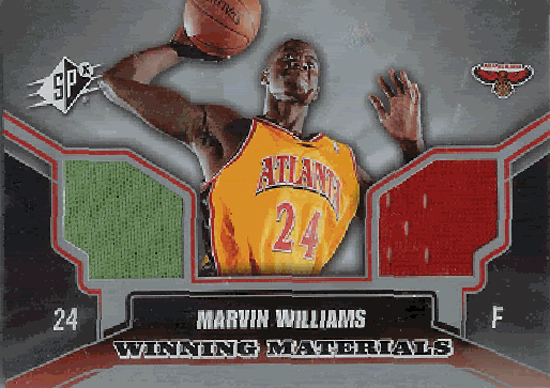 Congratulations Adam, you have really proven yourself to be THE Marvin Williams Super Collector! Help Adam continue his quest to get all the SPx Winning Materials cards out there by going through your older UD NBA cards. Did you find any Marvin Williams cards? If so, contact Adam at adamandjennie8195@hotmail.com.