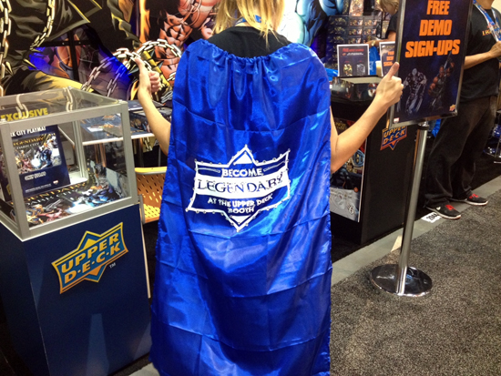 We are not even halfway through the 2013 Comic Con in San Diego, but fans are loving the experience they are having with Upper Deck Entertainment at the event. Whether the company was demoing Marvel Legendary, sharing special promotional capes with fans, having Marvel artists like J.J. Kirby signing at the booth or just having characters engage in dance competitions and photo opps, it has already been a very memorable show. With more good times lined up for the weekend, you’ll want to make sure you stop by. In the meantime, check out these images from the fun thus far.