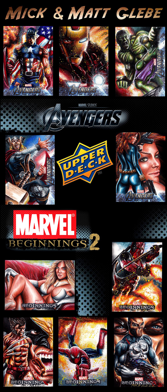 Mick & Matt Glebe worked in collaboration on Upper Deck’s new Marvel Avengers and Marvel Beginnings II products set to hit shelves in the coming months. They created some very compelling sketch cards that will can be found in those packs and will likely be highly collectible. Take a look at some of their work from those sets: