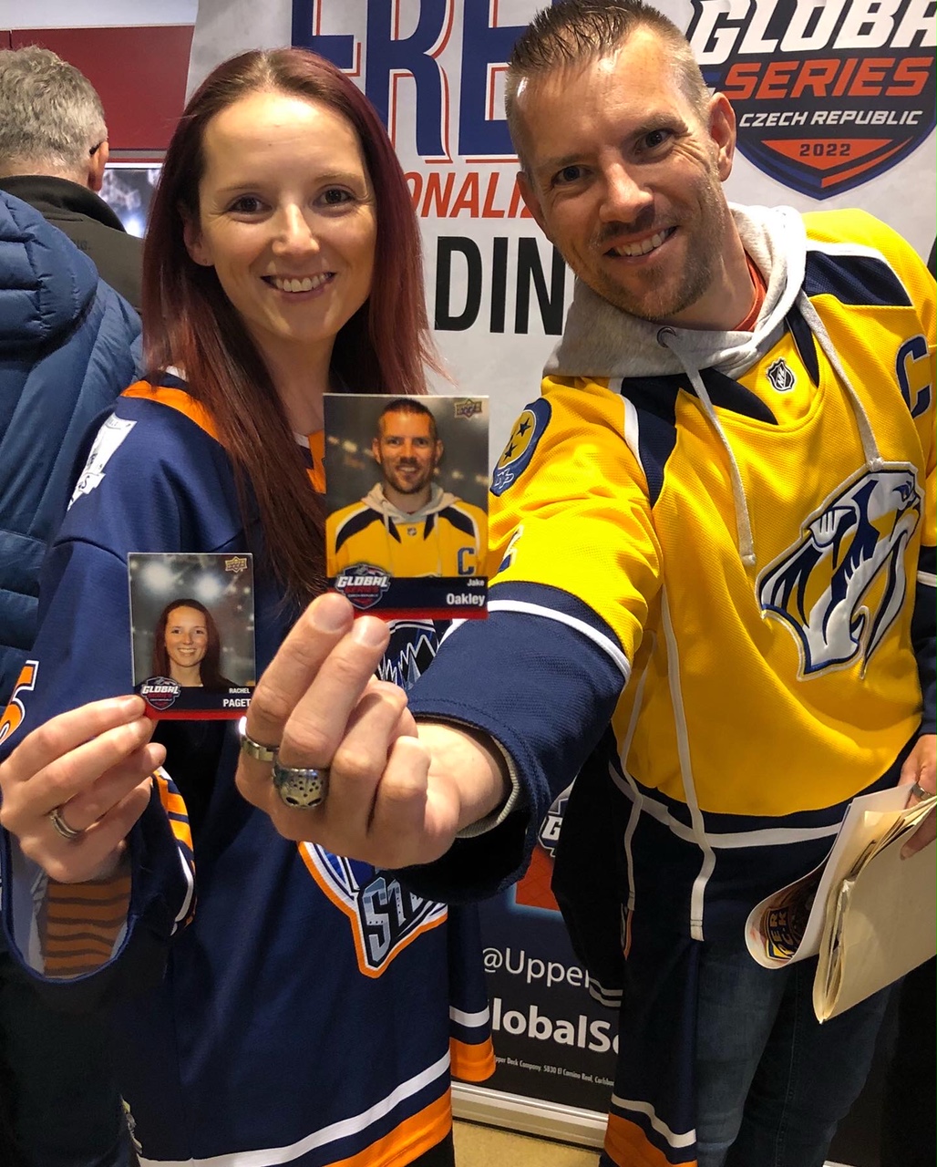 Fans from all over the globe were able to kick off the NHL season with exciting games featuring the Nashville Predators and San Jose Sharks in the O2 Arena in Prague, Czech Republic! Throughout the two games, attendees were able to create their own personalized trading card, just like they’re doing in Nokia Arena! Since this isn’t the first Global Series games in Prague, fans were sharing that they were ecstatic to create another personalized card.
