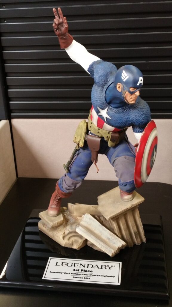 Upper Deck is also hosting two World Championship tournaments, and you can win cash prizes in both of them! First, on Friday, July 31 at 10AM, will be the Legendary World Championship. $10,000.00 in cash will be up for grabs. The World Championship will be a modified swiss round event with four players at a table. Each round will feature the same Mastermind, Scheme, Hero and Villain setup, so maybe you’ll find a strategy that works for you as the tournament progresses. At the end of each game, your victory points will be totaled up. First place at each table will receive 10 tournament points. Second place will receive 6 tournament points. Third place will receive 3 tournament points and Fourth place will receive 1 tournament point. At the end of all the qualifying rounds, the Top 25 players based on tournament points will receive cash prizes. The Top 5 players will play one Final Game, with $5,000.00 going to the winner, $2,000.00 going to second place, $1,000.00 for third place, $700.00 for fourth place and $300.00 for fifth place! In addition, the Champion will be receiving a pretty sweet limited Edition Captain America statue trophy! Entry into this event is $16.00.