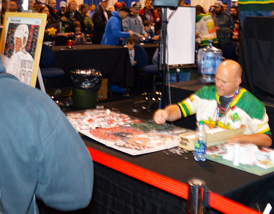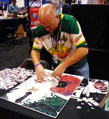 Canadians visiting the show seemed to feel the same way as they were inspired watching the piece come together as Carroll labored three days on the mosaic. Even famous athletes were moved by it as baseball great Andre Dawson stopped by more than once to check it out. Media also came by to interview Tim about the piece.