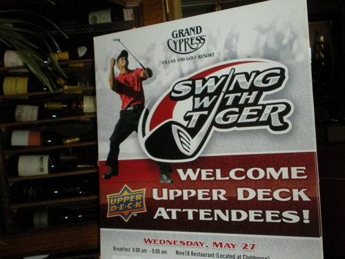 It was billed as a once-in-a-lifetime opportunity to meet and interact with the greatest golfer on the planet- and 18 lucky Upper Deck customers and collectors were eager to find out if the event could live up to the hype. Even us Upper Deck staffers were beginning to get antsy, wondering if we could meet the high expectations we had created leading up to it. After all, Tiger could only do so much in the one hour he had available (as he prepared to play in the Memorial this week). It wasn’t as if he was going to be able to instantly fix someone’s slice or cure someone of a lifetime of putting yips.