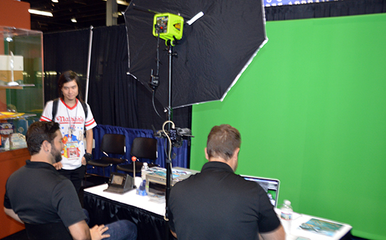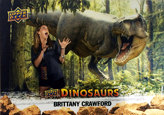 As Upper Deck prepares for the release, we thought it would be fun to produce personalized trading cards at the National Convention for fans in attendance last week. It was a huge hit with attendees both young and old as they were photographed in front of a green screen and a Tyrannosaurus Rex was placed behind them onto a trading card using actual imagery from the set. Upper Deck also handed out promotional preview packs of the product to fans in attendance.