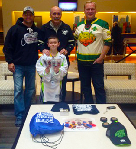 Aiden will get the opportunity to see what it’s like to be a NHL® All-Star this weekend. He came out with his grandfather under the guise they would try to scalp some tickets for some of the events, but when he arrived, Upper Deck and Defending the Blue Line staff let him in on the surprise. This weekend, Aiden and his grandfather will enjoy complimentary tickets to the NHL® All-Star Fan Fair, Skills Competition and All-Star Game. On Saturday he will go behind the scenes with a special VIP locker room tour. Additionally, Upper Deck took care of their hotel accommodations and gifted Aiden with some collectibles that will surely become the centerpieces of his collection.
