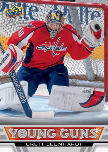 “Words can’t describe the surprise I was given when one of our players along with head coach Adam Oates presented to me the Upper Deck Young Guns blow-up cards before our team meeting with my image on them,” said Brett Leonhardt. “As a card avid card collector my entire life, this was truly a dream come true. My father, brother and I attended many card collecting expos and spent countless hours through our youth collecting hockey cards and completing sets. You really created a highlight in my life by putting this together and I don’t know how to thank you enough!”