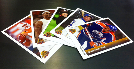 It’s Throwback Thursday so let’s go back through Upper Deck’s trading card history and come up with a fun giveaway. Last night was a crazy night in the world of hockey; Thomas Vanek being traded to the Montreal Canadiens, but even more shocking is Tampa Bay Lightning trading captain Martin St.Louis to the New York Rangers for their captain Ryan Callahan and two draft picks. Captain for a captain, should be interesting to see who will make the greatest impact! So let’s put up a throwback card of and see if our fans can come up with some great captions for the card! Please share your comical caption to this card for your opportunity to score one (1) 5-card Upper Deck 25th Anniversary Promo card set!