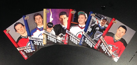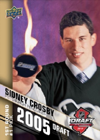 It’s Throwback Thursday so let’s go back through Upper Deck’s trading card history and come up with a fun giveaway. The first round of the 2014 NHL® Draft™ begins tomorrow and reality is setting in for top prospects like Michael Del Colle, Leon Draisaitl and Samuel Bennett. These guys are hoping for the outcome that Sidney Crosby received in 2005 when we was chosen as the overall No.1 pick to the Pittsburg Penguins. So let’s put up a throwback card and see if our fans can come up with some great captions for the card! Please share your comical caption to this card for your opportunity to score the below 6-card set from the 2013 NHL® Draft and 5 packs of 2013-13 NHL® SP Authentic!
