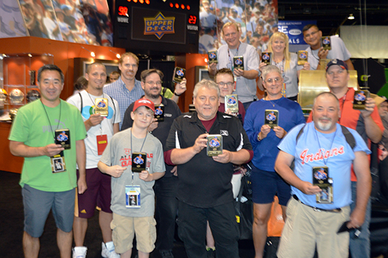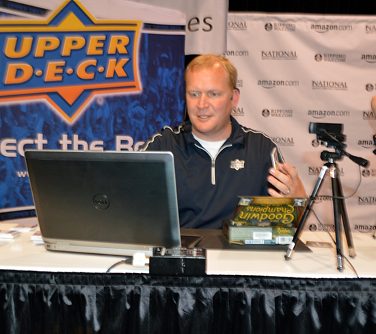 Upper Deck wanted to give fans at the National Sports Collectors Convention the opportunity to open a product they couldn’t usually afford so Thursday night we held a raffle where ten lucky collectors won the shot to participate in the Premier Case Break.