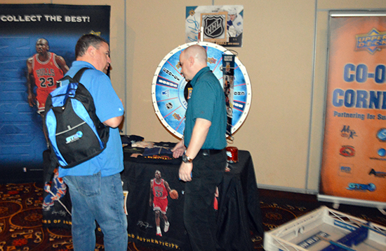 The best giveaway from a shop owner’s perspective are the annual Upper Deck Industry Summit black boxes which yield 1-2 limited-edition autograph cards produced for this show! Most shops bring these back to use as prizes in their shops, but collectors can sometimes find these cards available on online auctions sites as some owners will use them to help offset the expense of attending the show!