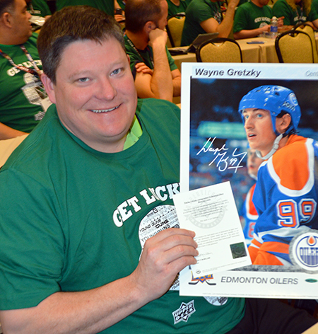 Then the fun came in as Upper Deck gave these shop owners a fun preview of 2014-15 NHL® Fleer Showcase where they could also score some great prizes for their shops like these Upper Deck Authenticated Wayne Gretzky signed blow-ups!