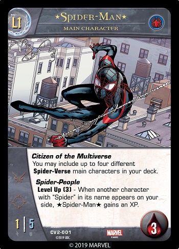 For his Level 2 Spider-War Level Up power, note that he will gain an XP when a “Spider” main character on your side is KO’d (even though main characters don’t stay in the KO pile when KO’d).