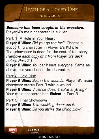 In Story Mode, players will play through a series of three games (called Parts) with the same decks, gaining an advantage for each game they win. And Part 3 is winner-take-all!