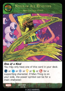 The Nexus is guarded in the comics by its stalwart protector: Man-Thing, including this one from Vs. System 2PCG: S.H.I.E.L.D. vs Hydra.
