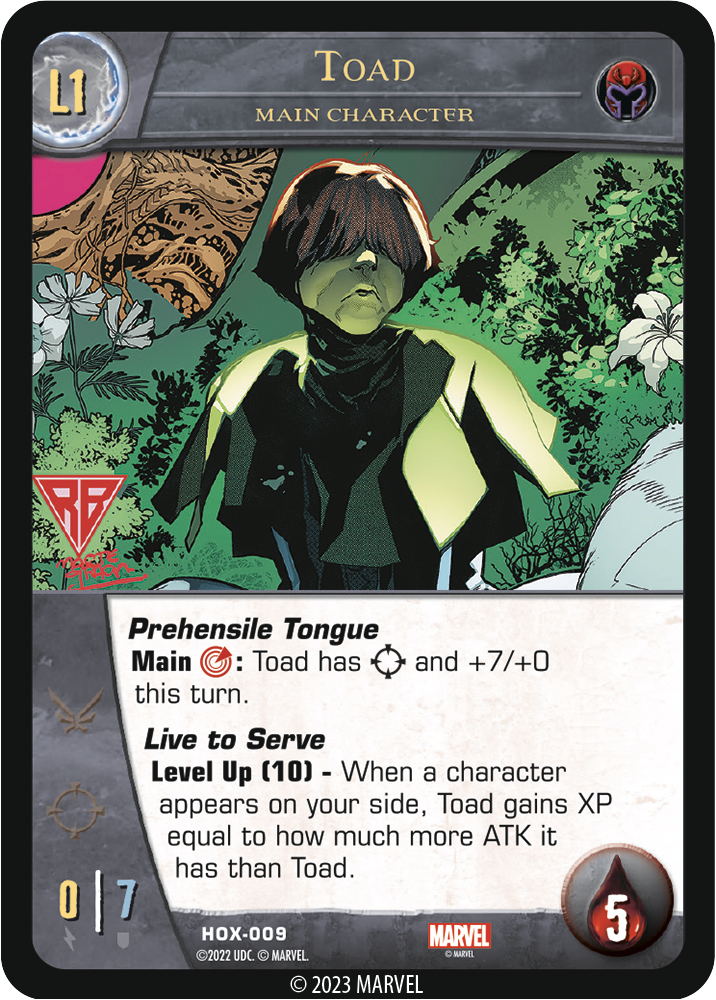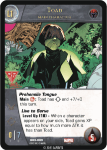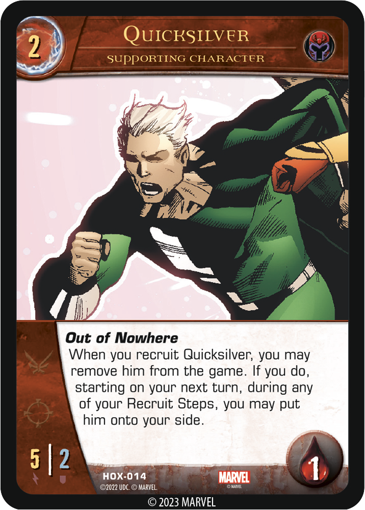 Welcome back to Krakoa, and more specifically to Vs. System® 2PCG®: House of X! Two of Mutantkind’s leaders were the main focus of our last preview, but this time it’s the Brotherhood taking point. Some of Magneto’s most loyal followers and the X-Men’s most recurring enemies are here to show what they’ve got, ranging from the lowest lows to unstoppable heights.
