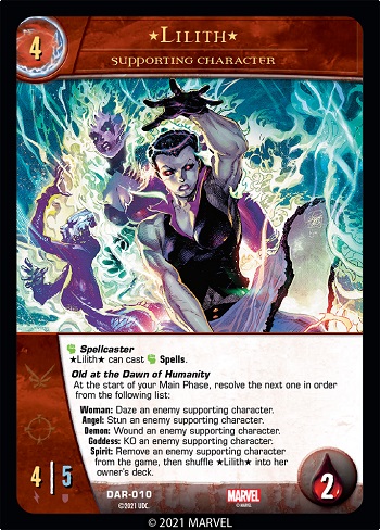 Welcome back to the final set of previews for the Darkness and Light Arc for Vs. System 2PCG! This Arc features various forms of Darkness and Light throughout the Marvel Universe. The first 55-card Issue focused on one of the darkest teams in Marvel’s history: The Masters of Evil! The second 55-card Issue introduced Spells and highlighted the masters of the Mystic Arts! This final Issue, Into the Darkness, takes a dark turn into the world of the denizens of darkness! Let’s go dark!