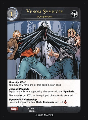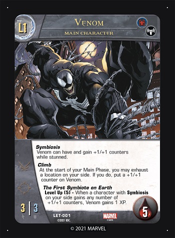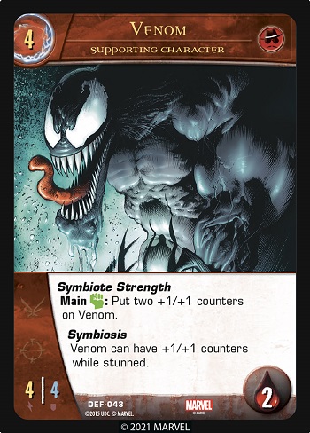 Greetings faithful Vs. System 2PCG fans! Welcome to our first look at the new Symbiotes Arc for the game. The first 55-card Issue, that we are going to look at today, focuses on Venom and some other symbiotes. It introduces a new Evil team, the Symbiotes (). The second Issue takes a look at Carnage and “friends” (more Symbiotes). The final Issue involves some more Spider-Friends who are involved with symbiotes.