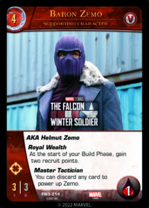 With Royal Wealth, some surprising dance moves, and his own sense of justice; Baron Zemo is crucial to infiltrating extravagant criminal underworlds and connecting with displaced refugees alike. Still, this Master Tactician has his own agenda.