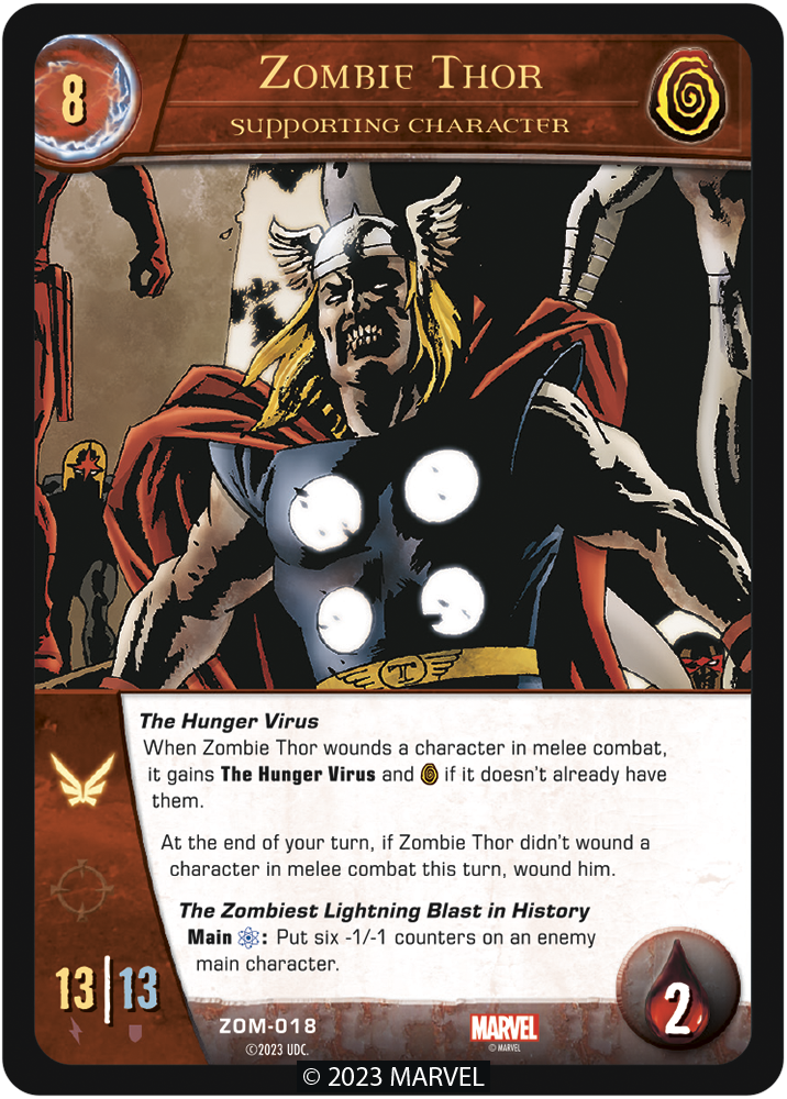 When Zombie Thor wounds a character in melee combat, it gains The Hunger Virus and [ZOMBIE] if it doesn't already have them.