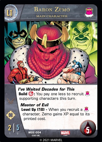 However, it will look for the highest cost Evil supporting character on your side, whether or not it’s actually on the Masters of Evil team. In other words, Baron Zemo isn’t just the Master of the Masters of Evil. He’s the Master of everyone who’s Evil. (At least he thinks he is.)