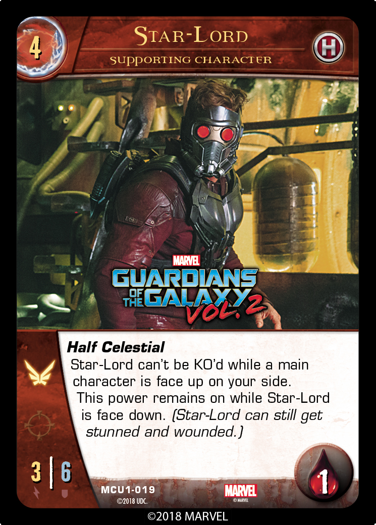To refresh your memory, here’s Star-Lord from Vs. System® 2PCG®: The MCU Battles: