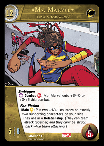 Oh, did I mention she likes to write fan fiction about her favorite super heroes? She’s the best! Pick your own favorite characters, and Kamala will make it so not only can they team attack together, but while doing so they can’t be struck back.