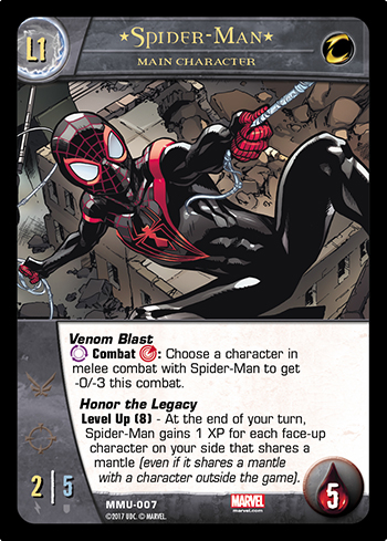 Formerly from the Ultimate universe, Miles now exists alongside the original Spider-Man, Peter Parker. You may notice some similarities to some other arachno-heroes. His Venom Blast is just like Spider-Woman’s and his Level Up Power rings of the Peter Parker Spider-Man Main Character.