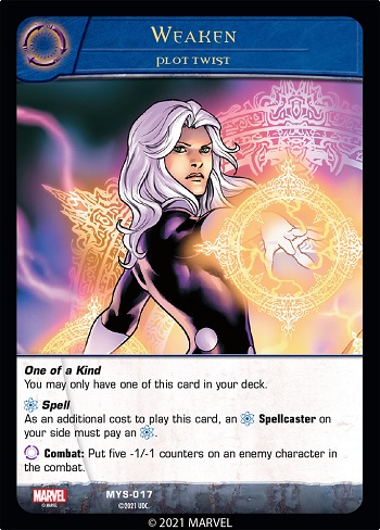 Note: For Spells playable in Combat (like Weaken above), the Spellcaster who casts it does not have to be in the combat.