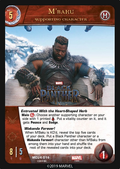 Please note that because there is no stated duration in the power, the character who drinks the Heart-Shaped Herb will have Pounce and Dodge until it leaves play. I wonder who else you will be able to have in your deck with Wakanda Forever!?
