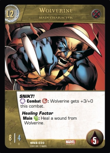 This is the Level 1 version of the Wolverine Main Character. Let’s take a quick look at the elements of his card.