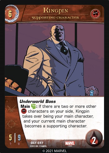 Example 3: Kingpin (supporting character) has used Underworld Boss to become your main character. When he gets KO’d, he’s removed from the game.