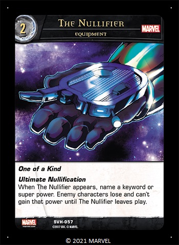 Enemy characters lose and can’t gain that power until The Nullifier leaves play.